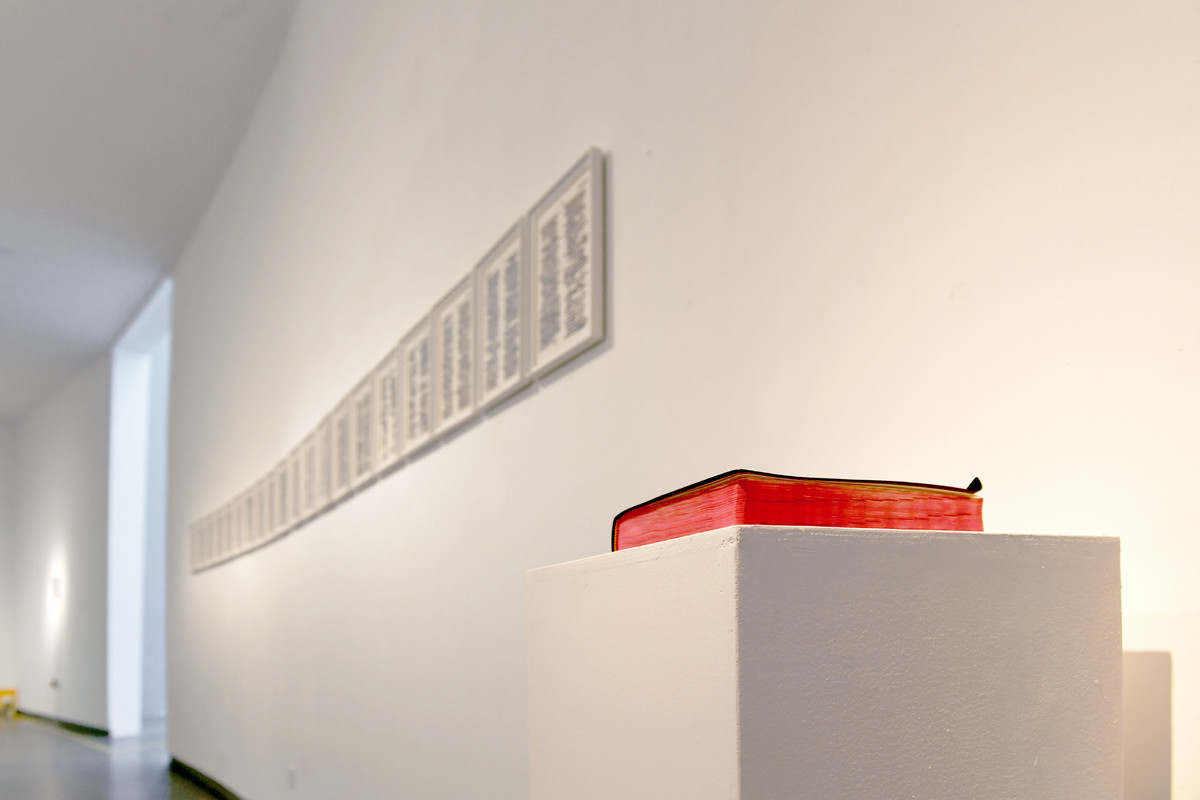 Printed on paper, wooden frame, paper Bible, wooden booth, wooden frame 29.7x21cmx20, paper Bible 29.7x21cm, booth height 120x35x35cm, 2016