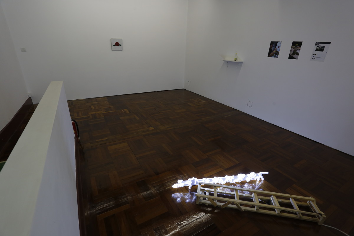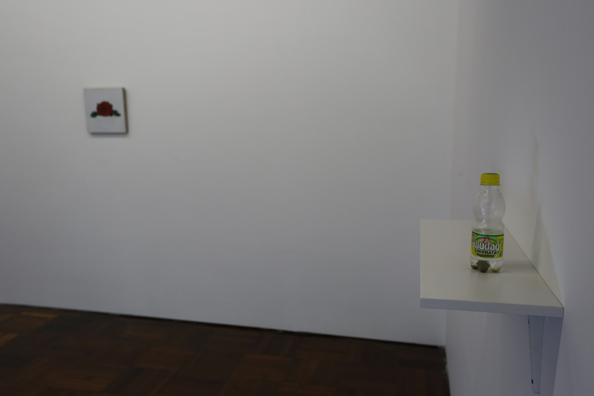Acrylic on canvas, Plastic bottle and seawater, Text, Neon lights, Acrylic on canvas 30x30cm, Neon lights 120cm, Text dimensions variable, 2020