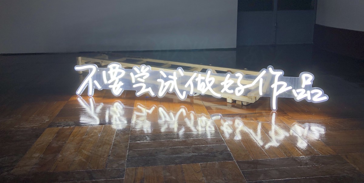 布面丙烯、塑料瓶、海水 、文本、霓虹灯等,布面丙烯尺寸为30x30cm、霓虹灯长度为120cm、其他尺寸均为可变,2020