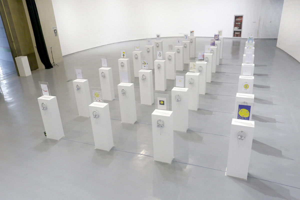 Shi Wanwan (b. 1982, Jiangsu province) has previously described his work as “action art and public art without the aim of producing images,” often staging interventions within different communities to engage issues of discursive power, socioeconomic relations, and cultural memory. For “A Call to Attention,” Shi Wanwan presents his new work The Moonlight (2020) for the first time. For this piece, Shi sought out the families of thirty so-called “left-behind children,” children whose parents have sought work in other cities, often leaving behind their children behind to be raised by their grandparents or other relatives. He then invited them to contribute two components to the artwork: he asked the child to draw a picture of the moon, and the parents to record an audio message describing the moon and responding to the project. The two elements are then presented together in an ordered array of thirty self-contained aesthetic displays. A left-behind child himself, Shi has noted that the artwork has a very personal resonance for him. By foregrounding the creative contributions of others whose personal agency is constrained by economic circumstance, as well as the generational ripples this creates, Shi asks the viewer to consider questions of subjectivity within situations that are paradoxically both voluntary and implicitly coerced.——Patrick Rhine(UCCA Director of Research,Curator)