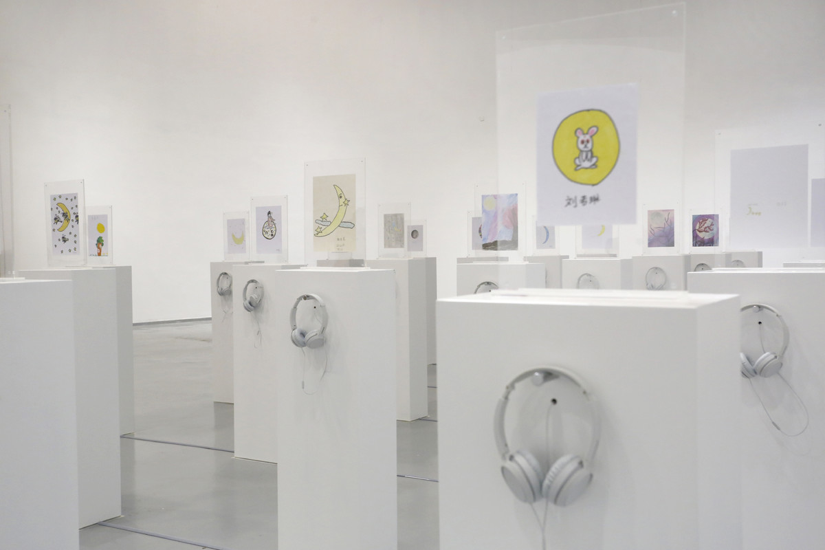 石玩玩(1981年生,江苏南通)曾称自己的作品是“不以生产图像为目的的行动艺术和公共艺术”,他经常通过对不同社群的干预以介入话语权、社会经济关系和文化记忆等议题。在本次展览中,石玩玩首次呈现了他的新作品《月光》(2020)。为了这件作品,石玩玩寻找到三十个所谓的“留守儿童”家庭,邀请他们提供两件东西协助完成作品:艺术家请留守儿童画一幅月亮的图画,再请留守儿童家长录制一段或者描述观看自己孩子所画的月亮,或是对此项目进行回应的音频。艺术家将图画和音频以排列有序、自成一体的30件艺术作品呈现给观众。自身即是留守家庭长大石玩玩曾说,这件作品引发了他的极度共鸣。艺术家通过将个体自理性受经济条件限制,连其下一代也因此受到影响的普通人的创作突显在观众面前,激发观众对限于自愿和不得不为之两难困境之下的人的主体性进行反思。——赖胜柏(UCCA研究部主任 策展人)