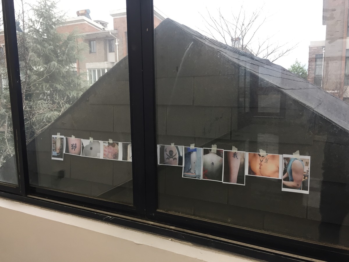 在网上搜索组成这句话的纹身图片,将它们组合在一起。