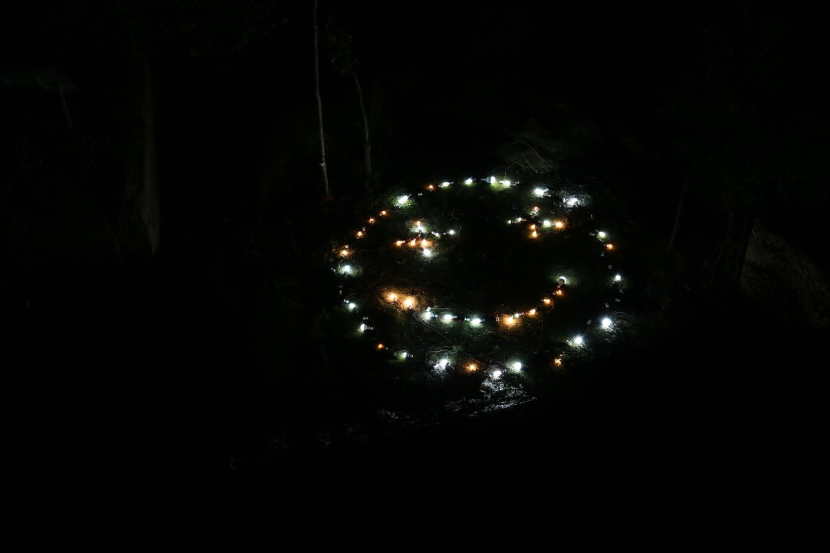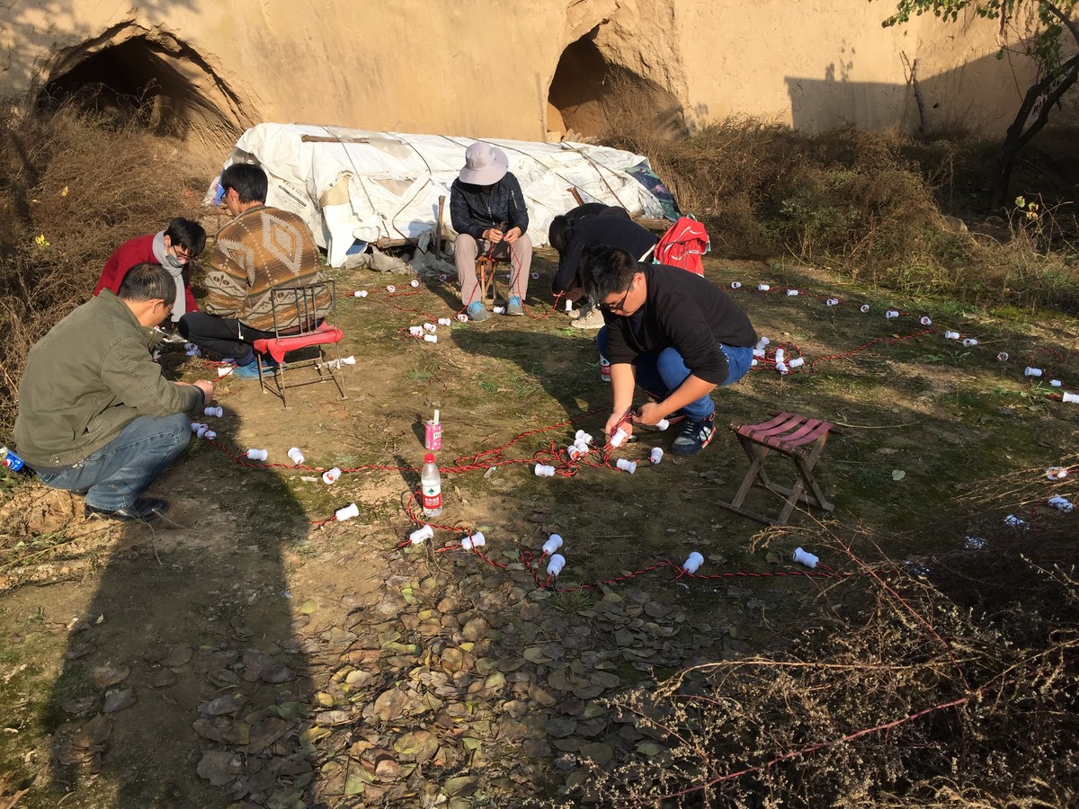On November 2, 2017, I borrowed all the lamps that were being used in 13 villagers' houses in ishijie for one night and used these bulbs to form a "smile" in the ravines on the edge of the village.