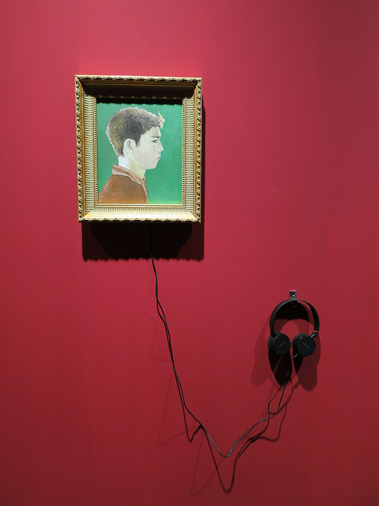 Action, Painting, Sound; Oil on canvas 40x34cmx10, Wood frame, 2013