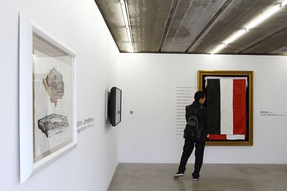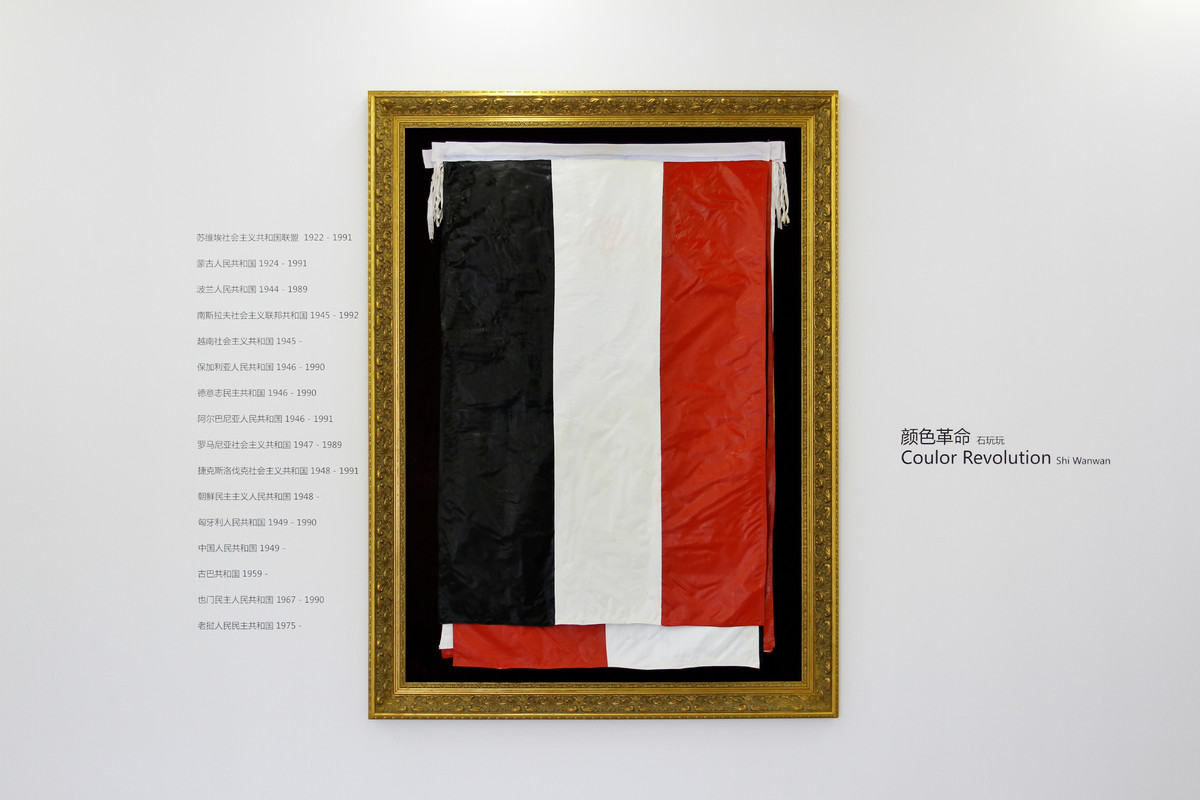 装置,综合媒介,丙烯着色与丝质国旗 ,国旗尺寸为150x96cm ,木质外框 ,2009