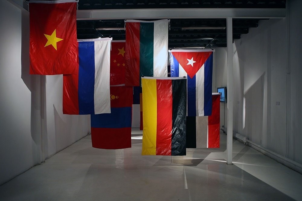 The patterns of 16 countries’ current national flags were painted on those flags used by them when they were still socialist countries.