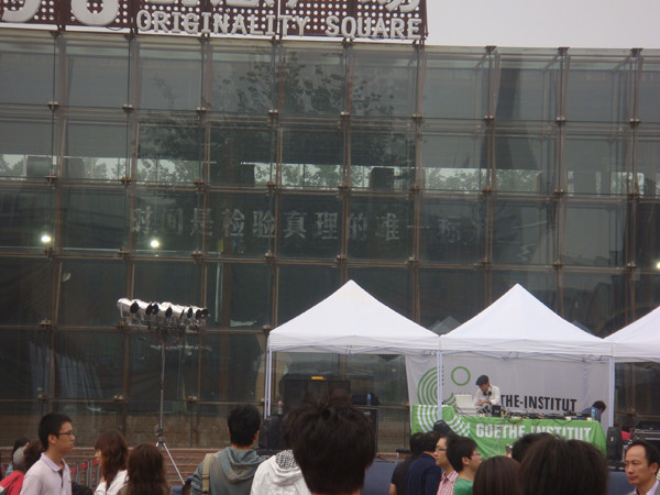 用胶水在玻璃上写上“时间是检验真理的唯一标准”,随着时间推移,风沙会将这句话逐渐显示出来。