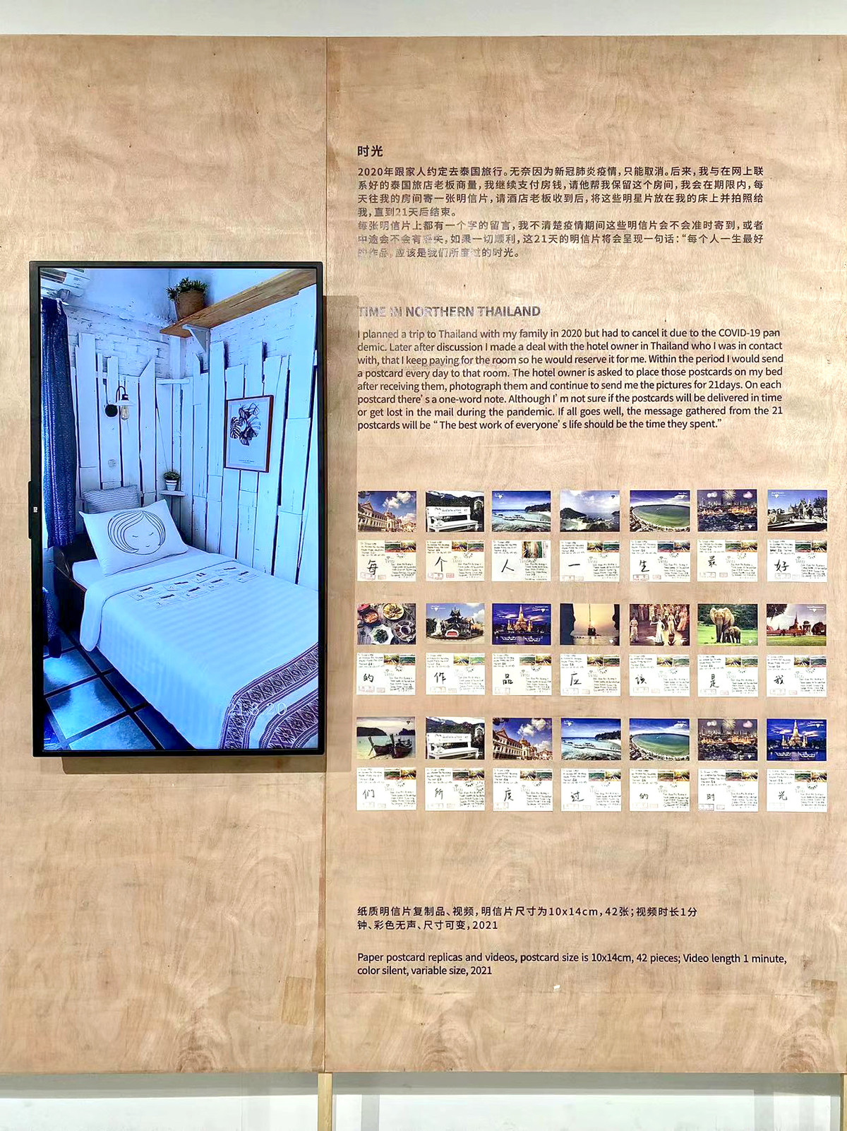 纸质明信片复制品、视频,明信片尺寸为10x14cm,42张;视频时长1分钟、彩色无声、尺寸可变,2021
